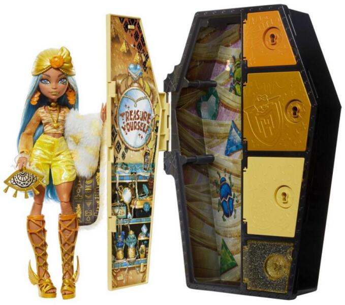 Cleo De Nile egy igazi sztár a Monster High iskolában, és karaktere a rejtély és a királyi elegancia tökéletes kombinációját hozza magával.