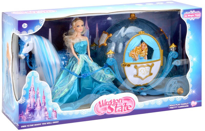 Kék színű tökhintó, Hamupipőke meséjéből! A Tökhintó játékbabával egy nagyobb méretű, csillámos kék színű hintó, ami egy nagy sütőtököt formáz A hintót egy fehér paripa húzza, és a babát be tudod ültetni az utastérbe. A hintó világítani is tud, Hamupipőke könnyen eljuthat vele a bálba, hogy megtalálja a hercegét! A játék 5 darab AA ceruzaelemmel működik, a csomagolás az elemeket nem tartalmazza. A Tökhintó játékbabával készlet játékbaba mérete: 28 cm.