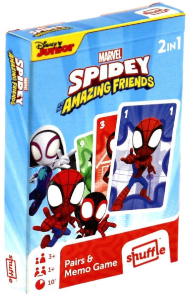 RAKTÁRRÓL AZONNAL! Spidey és barátai Fekete Péter és memória kártyajáték - Cartamundi Anyaga: papír Játékosok száma: 2-4 fő A részletes játékszabályokat a csomag tartalmazza. Ajánlott 3 éves kortól.