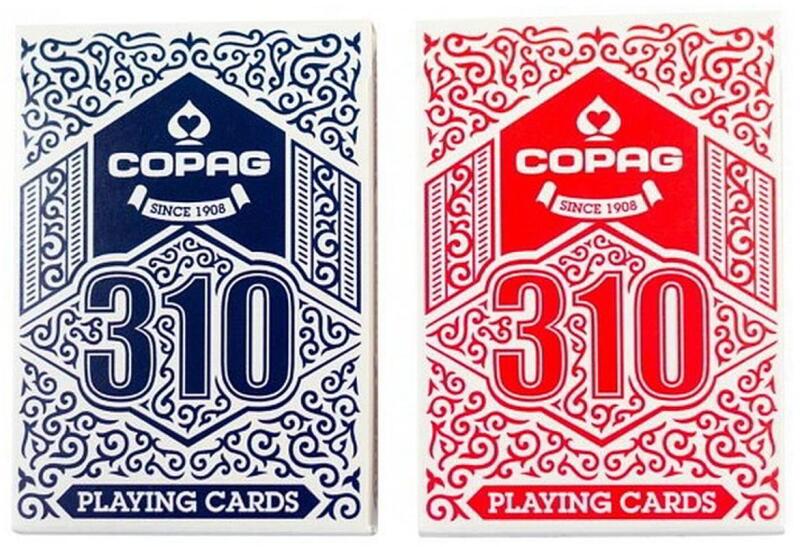 A COPAG 310 bűvész kártya dupla csomagos kiszerelése, 1 db piros + 1 db kék hátlapú csomag, együtt.