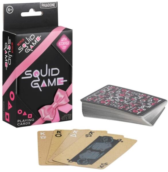 Éld át a Netflix egyik legelismertebb sorozatának izgalmát egyenesen az asztalodra ezzel a PALADONE kártyakészlettel. Ez a hivatalosan licencelt készlet ötvözi az ikonikus "Squid Game" témát a klasszikus játékkártyák funkcionalitásával, kiváló szórakozást és egyedi gyűjtői darabot kínálva. A díszes fémdoboz jellegzetes dizájnjával nemcsak védi a kártyákat, hanem egyedi megjelenést is kölcsönöz nekik, így tökéletes ajándék a sorozat rajongóinak. A "Squid Game" egy popkulturális jelenség, amely világszerte rabul ejtette a nézők szívét. Feszültséggel, drámai csavarokkal és sötét hangulattal teli története több millió rajongót szerzett, és most te is átélheted ennek a hangulatnak a részét minden játék során. Akár pókerezel, römivel vagy pasziánszozol, ezek a kártyák a népszerű sorozat izgalmát hozzák el a játékodba. Jellemzők Termék: Játékkártyák díszes fémdobozban Téma: Squid Game – az ikonikus Netflix sorozat Anyag: Kiváló minőségű papír, védő fémdoboz Kártyák száma: Standard 54 lapos pakli Licenc: Netflix Alkalmazás: Kártyajátékok, gyűjthető, tökéletes ajándék Célja: A sorozat rajongóinak és a társasjátékok szerelmeseinek