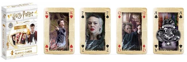 WADDINGTONS NO. 1 Harry Potter kártyajáték angol nyelvű, VEG-035613Játékkártyák a Harry Potter filmek szereplőivel. Játssz velük a kedvelt kártyajátékokból, mint például a römi vagy a pasziánsz. A csomag 55 kártyát tartalmaz. A kártyák vízállók. A kártyák felületkezeléssel rendelkeznek. Gyermekek számára 4 éves kortól ajánlott.