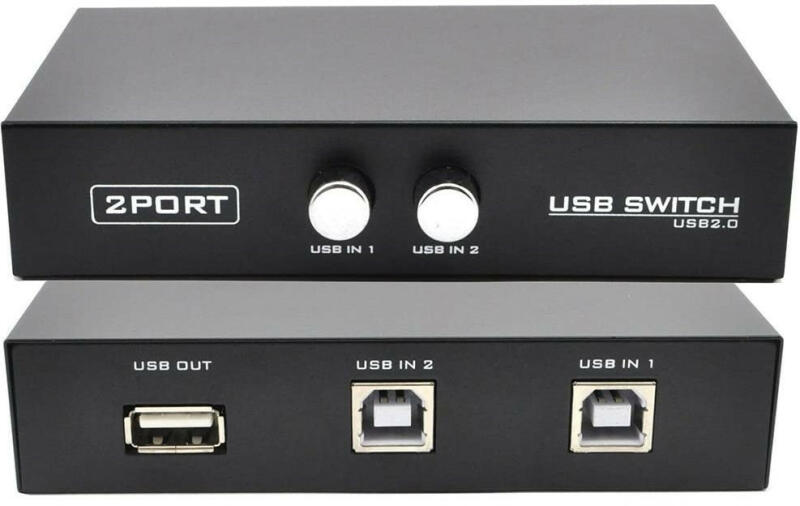 2 portos USB 2.0 kézi kapcsolódoboz HUB, 2 db megosztás 1 USB-eszköz nyomtatóhoz, szkennerhez, kamera billentyűzet (B0B6FBY72X)