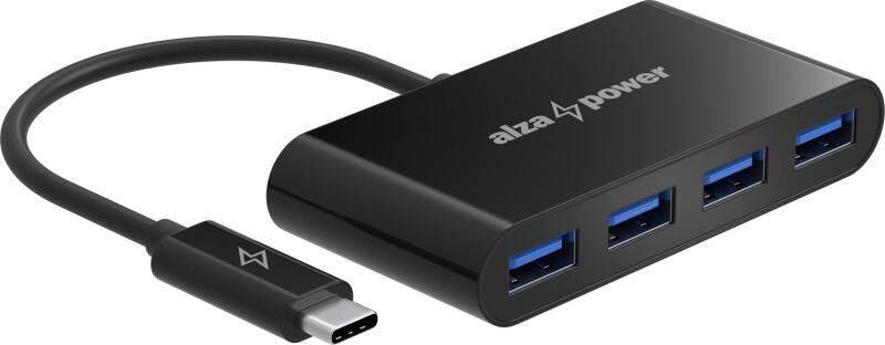AlzaPower USB-C (M) to 4× USB-A 3.0 (F) USB Hub, fekete (APW-HCC4A3B)