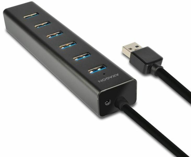 AXAGON HUE-SA7BP USB3.0 Töltőhub - 6 Portos, Fekete