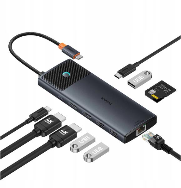 Baseus Hub adapter 10in1 Baseus Usb-c 2xHDMI, 3xUSB-A, Usb-c, RJ45, Sd/tf, Pd (cs (B00061800123-00)
