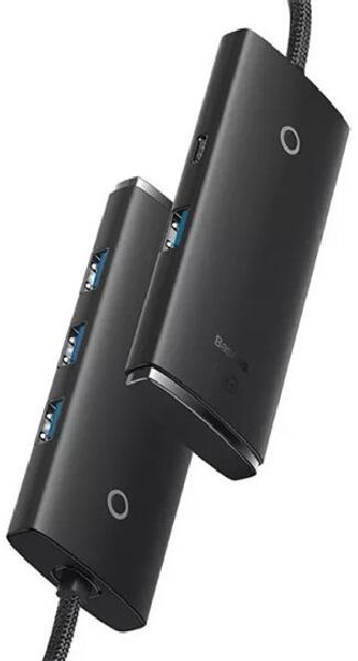 Baseus LITE USB HUB 4in1 (4 USB aljzat 3.0, USB kábel, 100cm) FEKETE