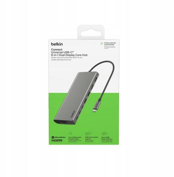Belkin Usb-c Hub 8IN1, 10 Gbps, 2X Hdmi 4K Szürke (INC015btSGY-CZ)