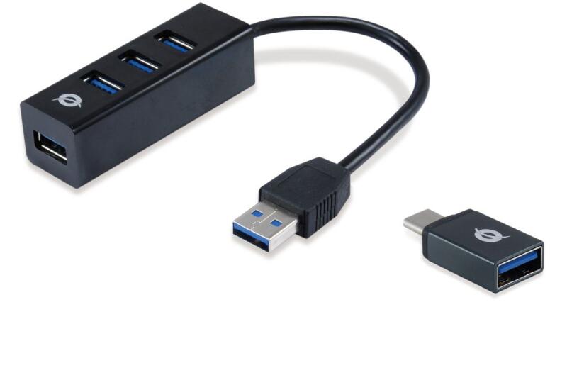 Conceptronic Hub -BIES04B USB 3.0 Hub - 4 Port + USB-C Adapter (HUBBIES04B)