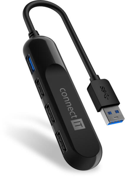 CONNECT IT USB-A hub USB 3.0, külső, FEKETE (CHU-4000-BK)