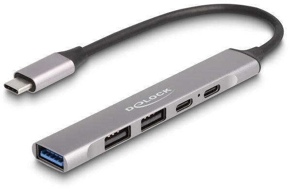 Delock 4 Portos Vékony USB Type-C Hub 1 x A-típusú USB 10 Gbps, 2 x USB 2.0 A-típusú És 1 x USB 2.0 USB Type-C , Valamint PD 95 W - fizz - 11 869 Ft