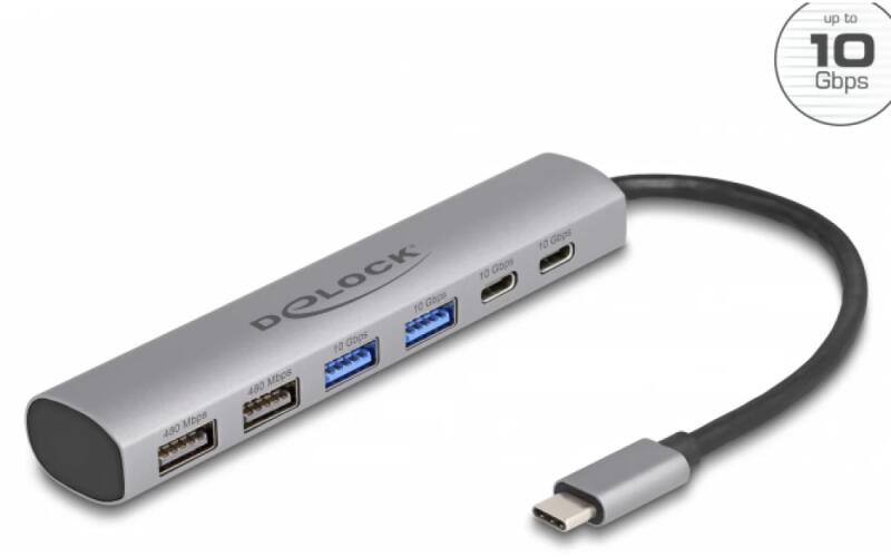 Delock 6 portos USB hub 4 x A-típusú USB anyával és 2 x USB Type-C anya csatlakozóval (64232)