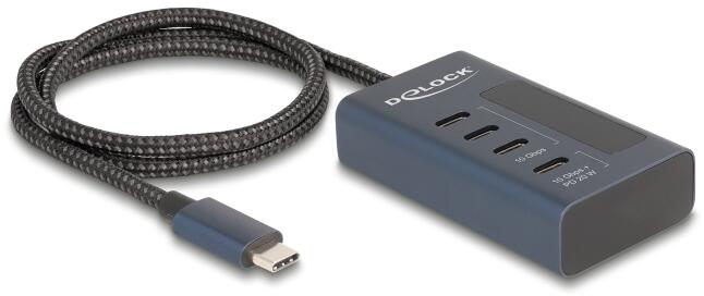Delock USB 10 Gbps hub 4 db. USB Type-C porttal, amelyből 3 adat csatlakoztatási felület és egy adat és 20 Watt-os PD tápjelzéssel (64189) (64189) (64189)
