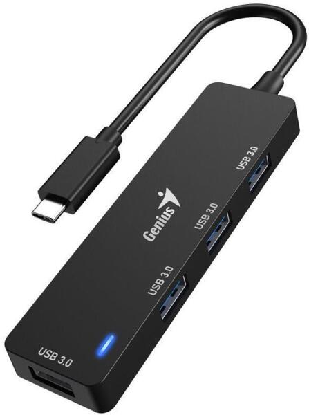 Genius UH-400 USB Hub, külső, USB-C - 4× USB 3.0, 15cm, fekete