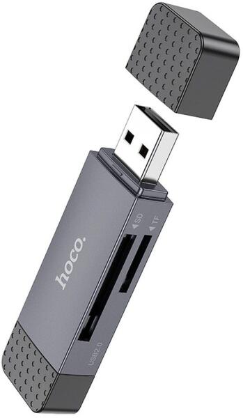 hoco. kártyaolvasó 2 az 1-ben USB A + Type C 3.0 fém szürke