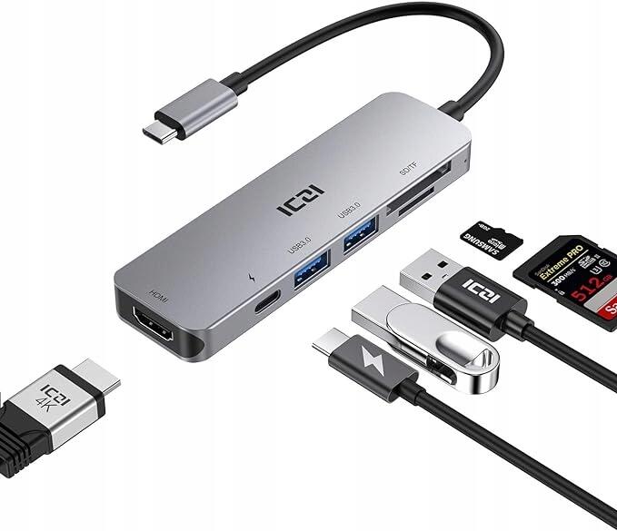 Iczi Hub Adapter 6IN1 Szürke IZEC-TH08 Hdmi Tf/sd Usb-c Usb 3.0 (WA4EQ)ALLEGRO