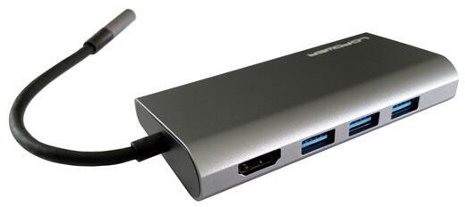 Külső hub kártyaolvasóval, töltéssel, RJ45 és HDMI porttal az USB-C porttal rendelkező eszközökhözCsatlakoztasson akár három USB-A perifériát számítógépéhez vagy notebookjához USB-C-n keresztül.  Ezen kívül a hub rendelkezik egy akár 100 wattos USB-C-PD porttal, két kártyaolvasóval, egy HDMI porttal, valamint egy RJ45 porttal. Portok:3x USB-A (USB 3.2 Gen. 1x1 (5 Gb/s))1x USB-C (videó/adat (480 Mb/s)/PD 100 W)1x HDMI 4K UHD-ig (3840 x 2160 @ 30 Hz; FHD 1920 x 1080 @ 60 Hz)1x Micro-SD kártyaolvasó1x SD kártya olvasó1x LAN (RJ45) Gigabit Ethernethez (10/100/1000 Mb/s)További jellemzők:teljesítmény 100 wattigrobusztus alumínium házPlug'n'Play