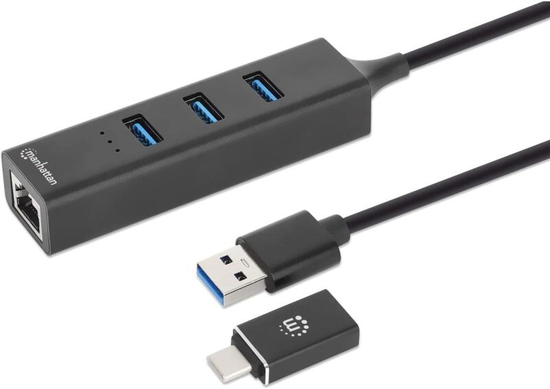 3 portos USB-C / USB-A hub Gigabit Ethernet hálózati LAN-adapterrel a laptop további csatlakoztatásának érdekében Eszköze egyik USB-portját használva a Manhattan 3-Port USB 3.0 Type-C/A Combo Hub Gigabit Ethernet hálózati adapterrel vezetékes internetkapcsolatot ad laptopjához olyan helyeken, ahol a Wi-Fi nem megbízható vagy nem elérhető. Három USB-A portot is biztosít a billentyűzet, egér, flash meghajtó és egyebek egyszerű csatlakoztatásához. Az USB 3.2 Gen 1 specifikációnak megfelelő eszközök (korábbi nevén USB 3.0) akár 5 Gb/s átviteli sebességet is elérhetnek a külső tároláshoz, nyomtatáshoz és egyebekhez. A hub SuperSpeed portjai visszafelé kompatibilisek a régebbi, 2.0-s vagy akár 1.1-es USB-verziókkal. Telefonját vagy táblagépét is töltheti, mivel a hub akár 5 V / 0,9 A tápfeszültséget is szolgáltat. Sokoldalú USB-A és USB-C csatlakozások számos operációs rendszerhez A beépített USB-A csatlakozónak és a mellékelt USB-C adaptercsatlakozónak köszönhetően, amely ráfér, ezt a hubot a lehető legtöbb USB-gazdaeszközhöz csatlakoztathatja. Válassza ki a számítógéphez, laptophoz, táblagéphez, MacBook®-hoz, Chromebook-hoz és Surface®-hez használható csatlakozót, és csatlakoztassa közvetlenül. Magával vihető kapcsolat Ennek az USB-elosztónak a strapabíró tokja, a kompakt mérete és a busz teljesítménye nagyobb hordozhatóságot biztosít Önnek, ha össze kell csomagolnia és indulnia kell. Nem kell aggódnia a kiegészítő tápegység miatt, ami ideális útitárssá teszi a hubot. Egyszerűen húzza ki az upstream eszközéből, húzza ki a perifériákat, és tegye be a laptop táskájába, amire szüksége van. Univerzális kompatibilitás az egyszerű telepítés érdekében Ez az univerzális USB 3.0 hub számítógépek széles skálájával működik, mivel nincs szükség további szoftverre vagy illesztőprogramokra. Automatikusan települ, amikor laptopjához vagy asztali számítógépéhez csatlakoztatja, így gyorsan üzembe helyezheti. Számos operációs rendszerrel is működik, mint például a Windows®, a macOS®, a Linux és a Chrome OS, így több platformmal is kompatibilis.