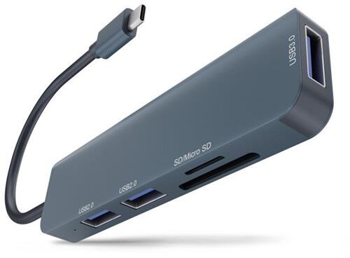 Newell HUN 5 in 1 USB-C univerzális elosztó, 2 db USB 2.0 + 1 db UDB 3.0 + SD + micro kártya olvasó, plug / play NL3604 (NL3604)