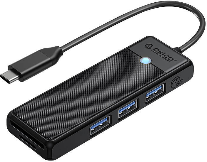 Orico 4in1 Hub 4xUSB-A 3.0, TF/SD kártya elosztó, USB-C kábellel, fekete