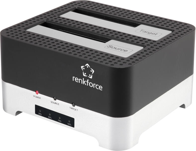 Renkforce RF-DOCKING-02 USB 3.2 (1. generáció) (USB 3.0) SATA 6 Gb/s 2 port Merevlemez másoló állomás 2.5 coll, 3.5 coll Klónozó funkcióval