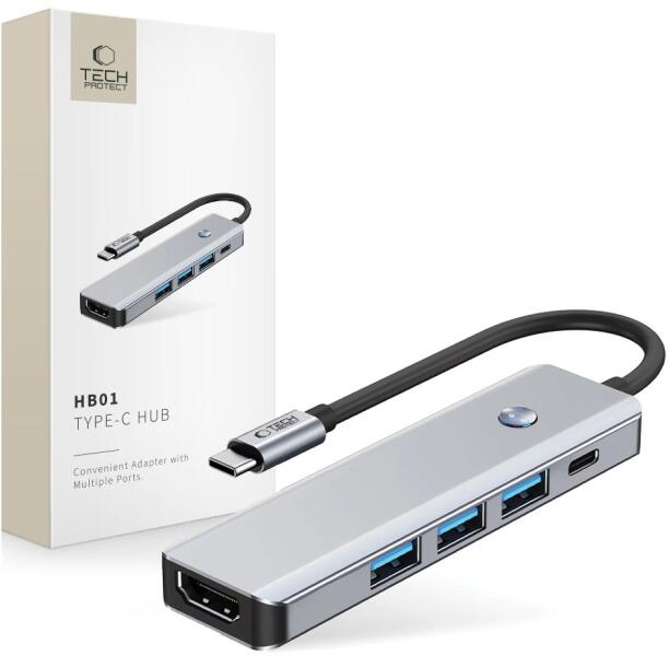 Tech-Protect Hb01 Hub Adapter 5in1 Type-c + Usb3.0 + Hdmi 4k 60hz + Pd100w Space Grey