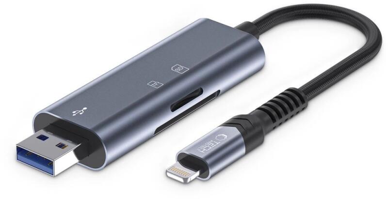 Tech-Protect UltraBoost SD / micro SD kártyaolvasó Lightning / USB-A csatlakozóval - szürke