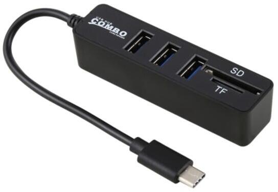Type-C OTG HUB fekete 3db USB Port, Micro SD és SD kártya olvasó Fekete, USB hub