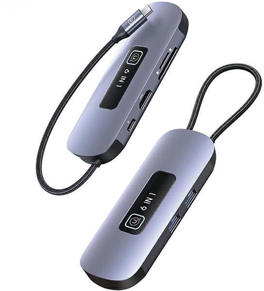 USAMS Adapter HUB 6in1 2xUSB 3.0/TF/SD/USB-C/HDMI PD100W Szürke/Zománc SJ642HUB01 - US-SJ642