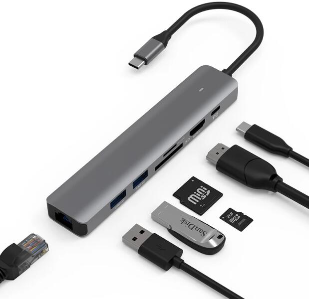 Usb-c Hub dokkoló állomás 2x Usb, Hdmi 4k, Pd 100W, Lan, Sd kártyaolvasó (LH0760)ALLEGRO