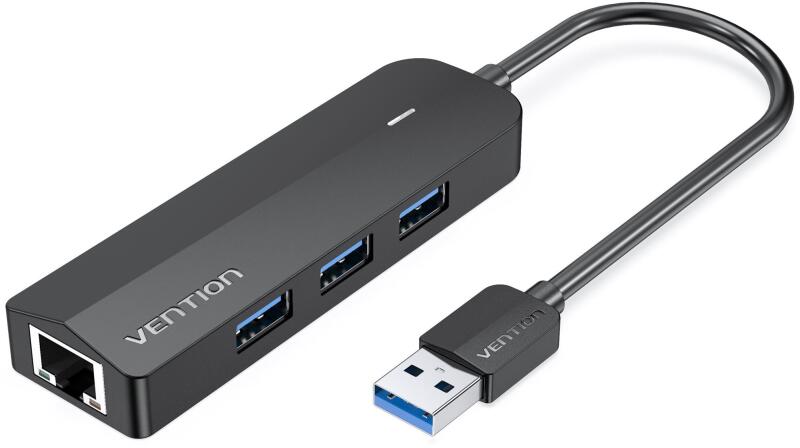 Vention 3-Port USB 3.0 Hub with Gigabit Ethernet Adapter, 0.15M - fekete (CHNBB)