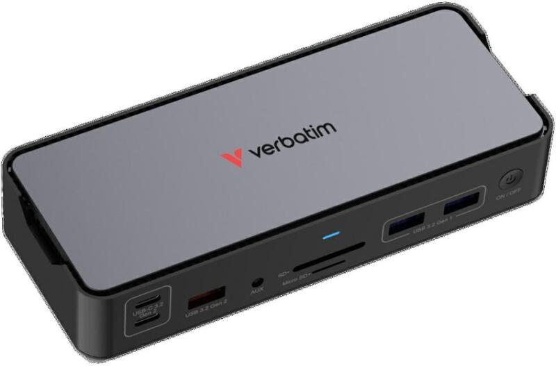 A Verbatim 15 az 1-ben dokkolóállomás tartalmaz SD és microSD kártyaolvasókat, egy RJ45 (Gigabit) Ethernet portot a stabil hálózati kapcsolatok érdekében, valamint egy 3,5 mm-es audio aljzatot fejhallgatók vagy hangszórók csatlakoztatására.
