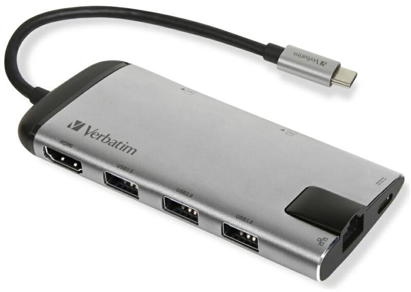 Verbatim USB-C Hub Adapter - USB-C/3xUSB-A 3.0/HDMI/Ethernet/SD/microSD alumínium 49142
