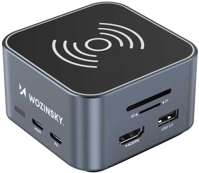 Wozinsky Hub USB-C 12 az 1-ben Wozinsky WHBC09Y8S multifunkcionális, vezeték nélküli töltési funkcióval, alumínium, 15 cm-es kábellel - szürke