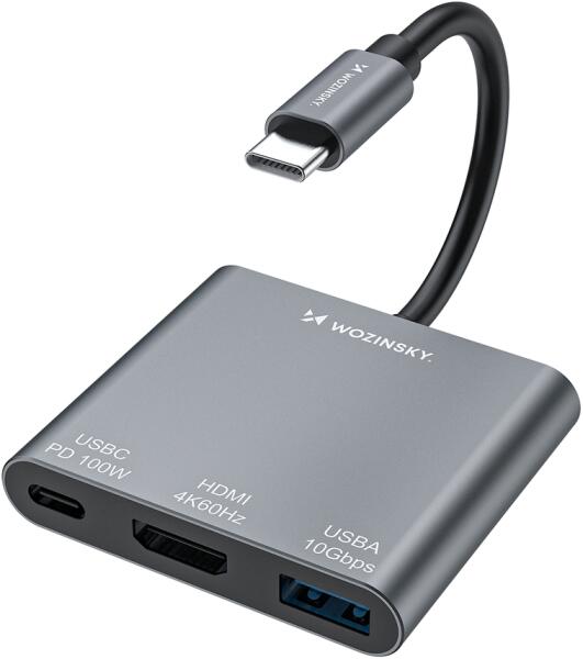 A Wozinsky WHCH-01 hub egy kompakt, mégis erős megoldás, amely bővíti laptopod vagy tableted képességeit. Három porttal van felszerelve, amelyek gyors, 10 Gb/s adatátvitelt, 100W-os Power Delivery-t és 4K @ 30 Hz videó támogatást kínálnak HDMI-n keresztül. Az alumínium ház jobb hőelvezetést és működési stabilitást biztosít, míg kis mérete miatt bármilyen táskába belefér. Ez egy praktikus kiegészítő, ami megkönnyíti a munkát, tanulást és szórakozást, helyszíntől függetlenül.