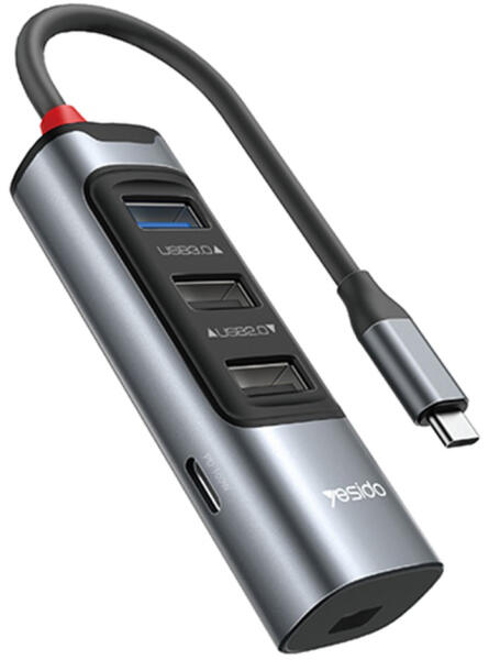 YESIDO - 5 az 1-ben Dokkoló Állomás (HB24) - Type-C 3x USB, USB-C, Mini DisplayPort, PD100W, Gyors Töltés, 4K@30Hz, 5Gbps - Szürke