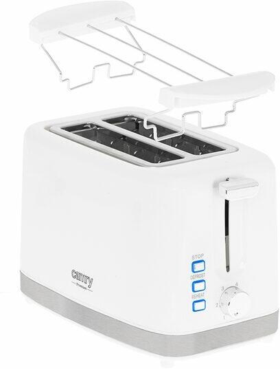 Camry Két Szeletes Kenyérpirító (CR 3219)Ismerje meg a hatékony, 900 wattos kenyérpirítót, amely egyszerre két szelet kenyér tökéletes megpirítására képes. A barnítás szabályozó gomb segítségével mindenki a saját ízlésének megfelelően állíthatja be a kenyér ropogósságát. Így a pirítós pontosan olyan ropogós lesz, amilyennek lennie kell. A morzsatálca segít a készülék, és az ételkészítés helyének tisztán tartásában. Amikor a kenyérpirító működik, a háza hűvös marad - ez növeli a készülék használatának biztonságát. A STOP gomb segítségével bármikor megállítható a pirítási folyamat. A kenyérpirító egy extra funkcióval is rendelkezik, amely növeli annak hasznosságát - egy grill ráccsal, amelyen felmelegíthetők a zsemlék. Legfontosabb jellemzők:
