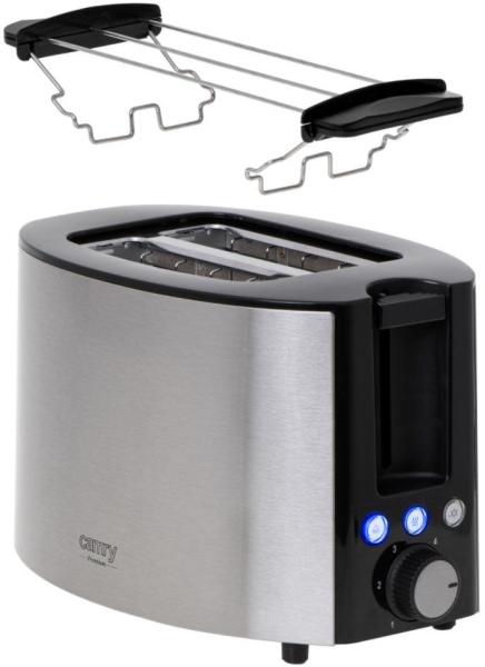 Camry Kétszeletes Kenyérpirító (CR 3215) - A tökéletes reggeli társIsmerje meg a Camry CR 3215 kenyérpirítót, amely egy hatékony, 1000W teljesítményű készülék, mely egyszerre két szelet kenyér elkészítésére képes. A pirítási fokozatok finomhangolására szolgáló szabályozó gomb segítségével a kenyér olyan ropogósra pirítható, ahogyan Ön a legjobban szereti. A morzsatálca tisztán tartja a készüléket és a környezetét is. A pirító külső burkolata működés közben hűvös marad, ezáltal növelve a használat biztonságát. A CANCEL gombbal bármikor leállítható a pirítási folyamat. Termék Jellemzők