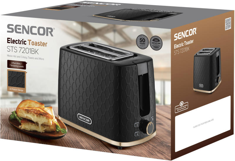 A Sencor STS 7201BK kenyérpirító praktikus funkciókkal rendelkezik, mint például a kenyér automatikus középre történő igazítása, amely lehetővé teszi a kenyér vastagságának kiválasztását. Ezenkívül képes automatikusan kiolvasztani, majd egyetlen folyamattan befejezni a fagyasztott péksütemények sütését. Praktikus a High Lift funkció, a pirítókosár úgynevezett magas emelése, amely biztosítja a még kisebb kenyérszeletek pirítását és egyben megkönnyíti a maradék részek eltávolítását.