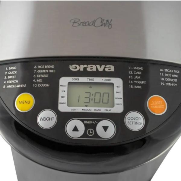 Házi kenyérsütő 19 programmal dagasztáshoz, kelesztéshez, sütéshez, erjesztéshez, befőzéshez és egyebekhez. Az Orava BreaChef fel van szerelve a Gluten-free programmal, a kenyér méretének és héjszínének megválasztási lehetőségével, valamint a késleltetett indítás, a leolvasztás és a hőmérséklet fenntartása funkcióival.
