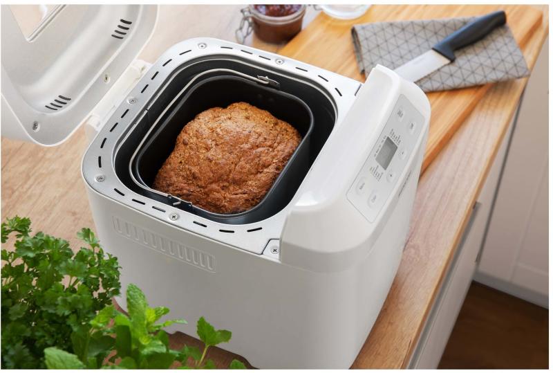 Biztosak vagyunk benne, hogy értékelni fogja azt a lehetőséget, hogy kiválaszthatja a kenyér súlyát, amely 750 g vagy 900 g is lehetséges. A kenyér kéregszíne 3 különböző fokozatban állítható. A késleltetett indítás praktikus funkciójának is örülni fog, amivel tökéletesen időzítheti, hogy ropogós kenyér várja otthon, amikor hazaér a munkából, vagy kellemesebbé teheti a mozgalmas reggeleket, hétvégéket.