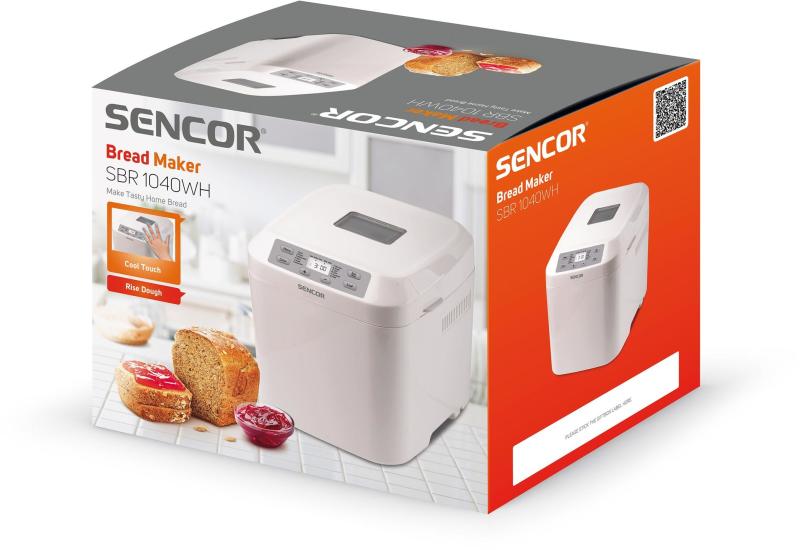 A Sencor SBR 1040WH kenyérsütő segítségével indítsa minden reggelét friss és ropogós házi készítésű kenyérrel. A készülék 10 sütési és további 2 egyéb programmal lett ellátva. Készíthet például pizzát, bagettet, kiflit, fánkot és más egyéb tésztákat vagy a gyümölcsök betakarításakor különböző ízletes dzsemeket, lekvárokat. A betekintő nyílással ellátott fedélnek köszönhetően pedig ellenőrizheti az adott program folyamatát. A kenyérsütőn 3 fokozat szerint állíthatja be a kényérhéj pirítását - világos, közepesen barnult és barna. Az előre beállított programokon kívül a kenyérsütő további hasznos funkcióval rendelkezik. Ilyen például a 13 órás késleltetett indítás funkció, vagy a melegen tartó funkció is. Áramszünet esetén a készülék 10 perces memóriával rendelkezik, így képes folytatni az abbahagyott programot.