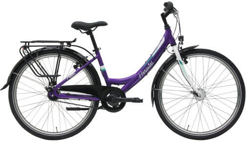Product details: Produktkategorie: Teens Produktart: Jugendfahrrad Radgröße: 26 Zoll Zielgruppe: Mädchen Rahmenform: Zentralrohr Rahmenmaterial: Aluminium Stahlgabel, starr Steuersatz: semi-integrated Lenker: Jugend Riser, 25.4 mm, 10° backsweep, 20mm Raise Vorbau: Stahl, 25.4 mm, Raise 25° Sattelstütze: Kalloy, SP-200, 250mm, Ø27.2 mm Sattel: Jugend ATB Griffe: Velo, ATB Bremshebel: Tektro TS325A-EN, für V-Brake Bremshebel hinten: Tektro TS325A-EN, für V-Brake Bremstyp: V-Brake Schalthebel: Shimano Revoshifter Schaltwerk: Shimano SG-C3001-7C Schaltungsart: 7 Gang Nabenschaltung mit Rücktritt Anzahl Gänge: 7 Gang Kurbelgarnitur: Prowheel PRA-11C Innenlager: Cartridge 52-EN Kassette: Shimano 19T Kette: KMC B1 Shimano Nabendynamo Nabe (Vorderrad): Shimano DH-C3000-3, Nabendynamo Nabe (Hinterrad): Shimano Nexus 7G. , Rücktrittbremse Felge: Aluminium Felge hinten: Aluminium Bereifung: Kenda K-935 mit Reflexstreifen Reifengröße (ETRTO): 50-559 Reifengröße (Zoll): 26 x 1,95 Frontleuchte: AXA Eco Line, bis zu 15 Lux Rückleuchte: AXA Slim Steady, Gepäckträgerrücklicht LED mit Standlicht Pedale: Wellgo Kettenschutz: Kunststoff Schutzbleche: Kunststoff, mit V-Streben Gepäckträger: Stahl V-Type, mit Federklappe Nabe/Schaltungsart: Shimano SG-C3001-7C Gewicht **: 16 kg Speichen: Stahl, schwarz, 2 mm Schaltungsart ShopFilter: Nabenschaltung mit Rücktrittbremse Einsatzzweck ShopFilter: Kurzstrecke Hersteller: HERCULES Sattelklemme: QR, black Schlauch: Kenda DV Ständer: Standwell SW-MA027J, Center Rahmenbezeichnung Hersteller: ATB, AL 7005 PG Durchläufer: nein Modellserie: Pippa Grundfarbe: violett Rücktrittbremse: ja Zulässiges Gesamtgewicht: 115 kg Einsatzbereich ShopFilter: Straße & Asphalt Straßenausstattung: ja Bremse: Tektro 855AL-EN, V-Brake Bremse hinten: Tektro 855AL-EN, V-Brake Herstellerfarbe: purple shiny