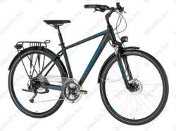 Kellys Carson 70 férfi trekking kerékpár27 fokozatú Shimano váltó, agydinamó, tárcsafék Sok szót kár pazarolni a 70-es szériára. Pont azokon a pontokon erős, ahol kell és ott marad el a top bringáktól, ahol a legkevésbé fontos. Így nem csak egy remek bringát fogsz kapni, de mindezt nagyon szuper áron is. Kaparintsd meg még ma és legyen szuper eszközöd a hosszútávú túráidhoz.  VázA nemrégiben frissített váz mindenben megfelel a kor által támasztott követelményeknek. Sőt, mivel a Kellys minden túra kerékpárján ugyanazt a vázat használja, már a beugró műszaki felszereltségnél is egy csúcs vázzal szerelt kerékpárt kapsz. Vékony falú, vastag profilú alumínium csövek, visszafogott, elegáns desing, maximális kényelem. A bowdeneket a vázban vezetik el, ami egyrészről letisztult kinézetet ad a bringának, másrészről növeli annak megbízhatóságát. A bowdenek a vázban védve vannak a külső hatásoktól, szennyeződésektől, így később van szükség azok karbantartására. Teleszkópból már egy középkategóriás modell a Suntour NEX DX került a bringába. Puha mozgású és nagyon kis súlyú, olyan extrákkal, mint a vállról vezérelhető lock-out. MeghajtásA 27 fokozatú Shimano Alivio M4000-es váltással szinte eltűnnek az áttételi lyukak, mindig meg fogod találni a megfelelő fokozatot. A Shimano-tól megszokott gyors és pontos működés minden körülmények között. A hajtómű pedig a Suntour kinálatából került kiválasztásra, mégpedig az XCM széria egy tagja. FékekA mai kor abszolút kívánalma, így a 70-es modellekre már rákerültek a tárcsafékek. Erősek és kiválóan adagolhatóak. Sőt, mivel egy Shimano gyártmány került rá, így a megbízhatóságával sem lesz probléma körülbelül soha... A bringát 160mm-es tárcsák késztetik megállásra, ami az országúton bőségesen elég lesz. Akkor érdemes csak nagyobban gondolkodni, ha közel vagy súlyban a kerékpár 120kg-os teherbírásához. KerekekA Kellystől megszokott módon a kerekek építéséhez saját márkás felniket alkalmaznak. Ezeket alumínium Shimano golyós/kónuszos agyak és elől agydinamó köré fűzik acél küllőkkel. A rendszer nagyon strapabíró, szinte lehetetlen, hogy "normál" használat mellett 8-ast szedj össze. A 70-es modell már megérdemel egy prémium köpeny, így a Kellys a Schwalbe Road Cruiser reflexcsíkos és defekttűrő gumikat szereli a kerékpárra. A specifikáció tartalmazza az első agydinamót is, mely mindig működésre tudja bírni a felszerelt LED lámpákat. Egyéb alkatrészekA Kellys a már megszokott saját márkás KLS és Kalloy kiegészítőket használja a kerékpárjain. Ezzel lehet amúgy is kellő karaktert megadni az amúgy kényelmes váznak. A Carson és Cristy 70-es szérián is rugós nyeregcsővel találkozhatsz. Erre a nyeregspecialista Selle Royal Essenza névre hallgató nyergetét szerelik. Komfort ez, nem vitás.