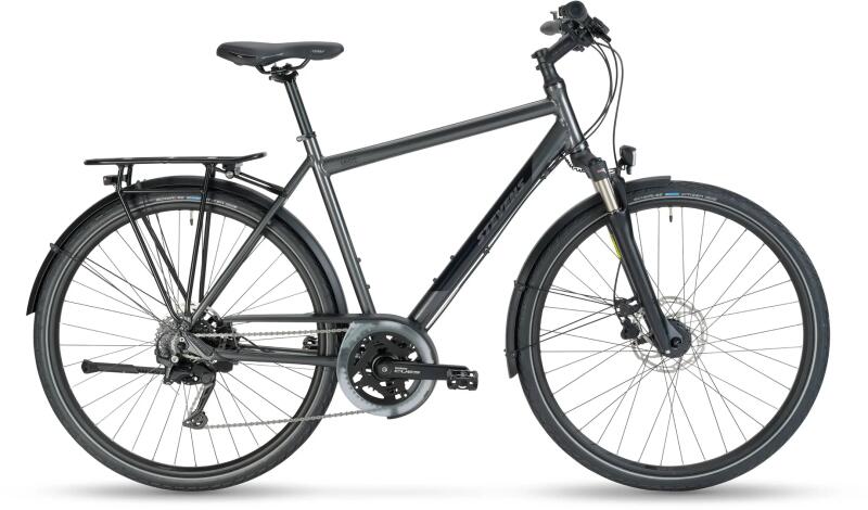 A 2024-es STEVENS Savoie könnyű, mégis erős alumínium vázzal készül, amely stabilitást és kényelmet kínál mindennapi használat során. A 63 mm-es rugóúttal rendelkező SR Suntour teleszkópos villa hatékonyan csillapítja az út egyenetlenségeit, lockout funkciójának köszönhetően pedig szükség esetén merev villává alakítható a hatékonyabb haladás érdekében. A hajtásról egy 2x9 sebességes rendszer gondoskodik, amely pontos váltást és széles áttételtartományt kínál, így emelkedőkön és sík terepen egyaránt kényelmes tempóban haladhatsz. A Tektro hidraulikus tárcsafékek erős és jól adagolható fékerőt biztosítanak, így bármilyen időjárási körülmények között biztonságosan irányítható a kerékpár. A Savoie teljes trekking felszereltséggel érkezik: csomagtartó, sárvédők, kitámasztó és beépített világításrendszer is megtalálható rajta. Többféle váztípusban elérhető, így mindenki megtalálhatja a számára ideális beállítást. Ez a kerékpár tökéletes választás azoknak, akik kényelmes és tartós társat keresnek mindennapi közlekedéshez és hosszabb túrákhoz.