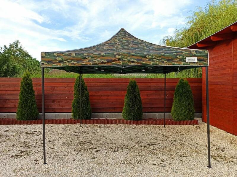 Terepszínű Rendezvénysátor / Pavilon - 3x4,5 méter - Ideális vásárokra, horgászathoz és kerti partikra! ?️ Ez a közép-erős, vastag ponyvás rendezvénysátor tökéletes választás rendszeres használatra. Pillanatok alatt felállítható, így időt takaríthatsz meg a fontos dolgokra! Legyen szó piaci árusításról, horgászatról, vagy egy kerti partiról, ez a pavilon megvéd az időjárás viszontagságaitól. Főbb jellemzők:Méret: 3x4.5m Gyors felállítás: 1-2 perc alatt felállítható és összecsukható Harmónika szerkezet: Könnyű kezelhetőség Erős szerkezet: Fém-fém csatlakozások a stabilitásért Vízhatlan tető: Microvászon poliuretán réteggel Állítható magasság: 4 fokozatban (174-183-192-201cm belmagasság) Lábak: 3cm-es zártszelvényű lábak Miért válaszd ezt a pavilont?Erős és stabil: Vastagabb szerkezet és tetőponyva a tartósságért. Szakmai segítség: Részletes útmutató a felállításhoz és összecsukáshoz. Alkatrész ellátás: Szükség esetén minden alkatrész kapható. Kiváló ár-érték arány!Mire ajánljuk? Rendezvényekre Árusításhoz, piacra Horgászathoz Kerti partikra Szervízsátornak Kültéri munkákhoz (eső/nap elleni védelem) Oldalponyvával melegedő sátornak hideg időben Mire nem ajánljuk? Mobilgarázsnak (nem viharálló)