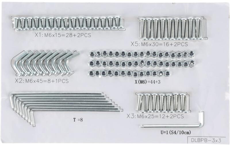 Biztosítsa a szerkezeti stabilitást és biztonságot, ha pergolája összeszerelésekor a megfelelő csavarkészletet használja, amely elengedhetetlen a biztonságos kapcsolatokhoz és a tartós tartóssághoz. Ellenőrizze a szerelési útmutatót a kompatibilitás és a helyes telepítés megerősítéséhez.