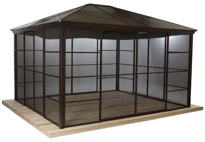 Az alumínium kerti pavilon praktikus és elegáns megoldás a pihenésre vagy a barátokkal való együttlétre. Méretek: 362×298×283 cm. Szín: bronz. A pavilon üvegezés nélkül készült. Egész évben használható. Az ablakok üvegbetét nélküliek. A pavilon kiegészítőit itt találja.
