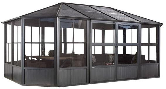 Az alumínium kerti pavilon praktikus és elegáns megoldás baráti társaságban való üldögéléshez és pihenéshez. Méretek: 384×594×281 cm. Szín: antracit. A pavilon üvegezés nélkül készült. Egész évben használható. Az ablakok üvegbetét nélküliek. A pavilon kiegészítőit itt találja.