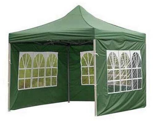 Összecsukható kerti pavilon + ablakos oldalfal 3x3m-es méretben - zöld
